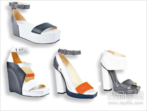 鞋履方面,贯彻时装色调以黑白为主,渗入荧光橙作点缀,非常讨好,清一色的高踭款,有粗踭、platforms 及 wedges,各适其适。