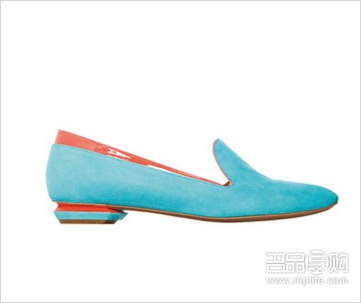 Nicholas Kirkwood slip-on in blue suede and orange patent leather $5,600 (On Pedder)