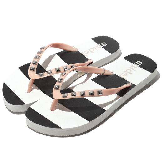 炎炎夏日,看到晴空蓝天,就最想到海滩晒日光浴及畅泳,浸在碧绿的海水中,确实是最透心凉的消暑妙法。去沙滩必备装束三宝:Bikini、太阳帽及人字拖或凉鞋,在热辣辣的沙滩上行走,又可少得了人字胶拖,除了时下流行的 Havaianas 拖鞋外,日牌 snidel 近期推出的人字拖鞋亦十分特别,在鞋底印有充满少女感觉的花式图案,但又会在人字夹指位处缀上窝钉,令人字拖变得不再单调,就算以它配搭牛仔裤或短裤行街 shopping 都表现出一份与别不同的型格。