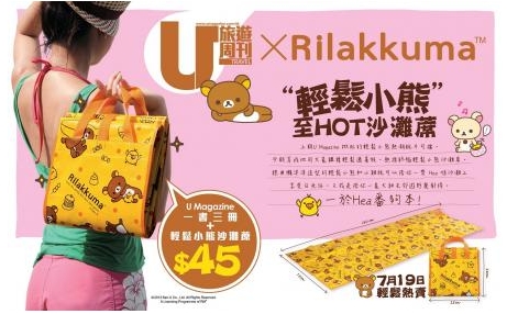 详情:7月19日出版之U Magazine别注版有U Magazine 别注版将继续 Rilakkuma 热潮,推出「轻鬆小熊至hot沙滩蓆」,今个夏天就同小熊小鸡一齐 hea 番够本啦!