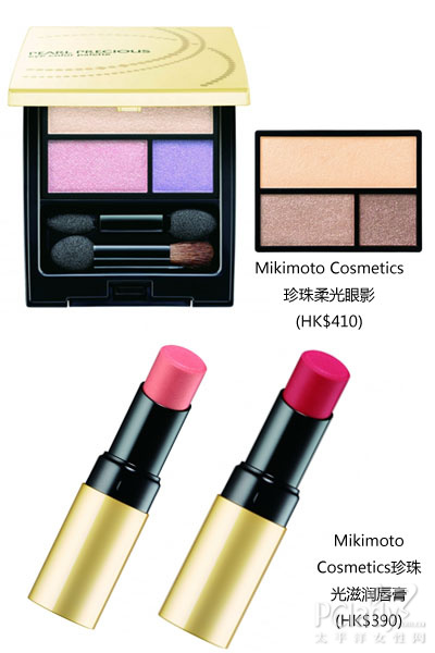 珍珠柔光眼影 (HK$410) 眼影组合透过雅致高贵的3种层次色彩,令双眸突显多层次妆效。轻柔丝薄质感,配以罕贵珍珠成份,美妆同时呵护眼部肌肤。