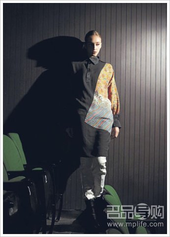Dries Van Noten 设计秋冬系列之前特地到伦敦的 Victoria and Albert Museum 一游,那里集齐了各个国家的装饰艺术和民族服装,他便将中国、日本、韩国等地方的传统服装拍下来,刚好就成为今季 print 的灵感来源。Dries Van Noten 一向擅长处理衣服的图案、剪裁、颜色、布料、层迭感,今年更再次做回他熟悉的民族风格加军装,整个系列就是手到拿来。中国皇帝的龙袍被裁剪成不同块状,拼贴到军装大衣上;日本的传统和服图案印在难以上色的丝质长裙上,再加件硬线条的军褛;或是在黑色大衣或手袖上用金线绣半边凤凰等,都是精妙地融合了中国日本的传统民族元素和出自品牌男装的硬朗军装风格。最令人佩服的是虽然用上大量东方色彩浓烈的图案,却没有一般中国设计带来的老套俗气感觉,确实养眼得多。