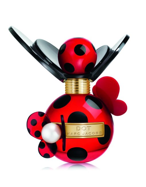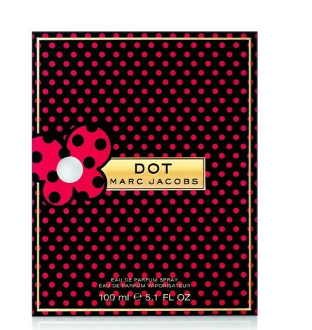 DOT MARC JACOBS 淡香精利用球体来拼凑出趣緻可爱的轮廓,红色X黑色就像甲虫一样,型格得来又很漂亮!再加上特大立体蝴蝶瓶盖,满载奢华气派!為了取得平衡感,在DOT MARC JACOBS金色浮雕标誌的旁边,会另加上一隻圆浑小蝴蝶作点缀,可爱迷人!前调方面,有美味的红莓果、鲜甜多汁的火龙果及金银花感觉醉人;而中调有,则有迷人的茉莉花、活力椰青水及橙花;最后,就是云呢拿、浮木及麝香作為后调,成就丰盛而甜美的花香调,快乐又充满朝气,令人一试难忘!
