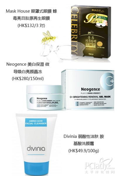 蜂毒亮目胶塬再生眼膜 (HK$132/3 对) 针对亚洲人的眼部的轮廓特征,崭新设计出可以完全覆盖眼部范围的眼罩式眼膜,能解决眼袋浮肿、黑眼圈、浮肿松弛及鱼尾纹问题。并能促进淋巴畅通,加速血液循环。