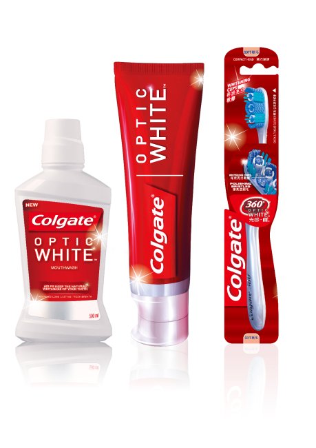 全新高露洁「Optic WhiteTM牙膏」及「Optic WhiteTM漱口水」含有独有的美白配方 -- 独特的过氧化氢科技,更能全面清洁牙齿色斑,去除深层污渍。而且牙膏蕴含独有的活性热能美白科技,当牙膏接触牙齿时便会產生热能,製造温暖感觉而且不会引致牙齿敏感,令牙齿、牙齦非常舒服,热能的產生亦代表著美白工程的运作。加上闪亮薄荷配方,刷完牙后口腔感觉清新。配合独有 Whitening Cup 的「360° Optic White 牙刷」螺旋形刷毛能够360度清洁牙齿表面。从此我们的牙齿就可以变得更洁白亮丽,而且口腔清新,笑容更亮白!