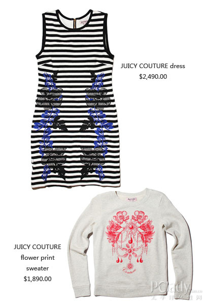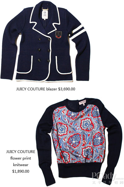 除了较少于品牌出现的美式校园风西装褛,以花卉图案作为串连的系列,更不禁令人联想起 Stella McCartney 的 2012 Resort 系列呢,想试试 JUICY COUTURE girlish style 以外的单品,今次绝对是好机会!