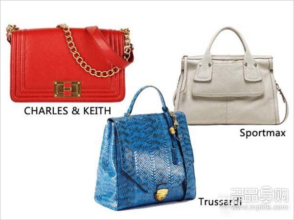 左:红色公文链条包(CHARLES & KEITH)