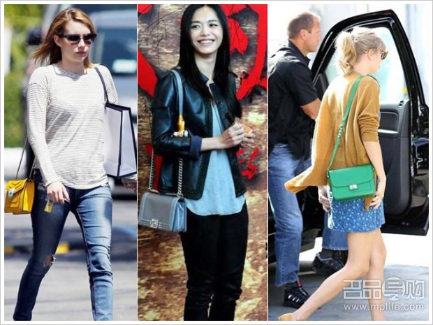 右:Taylor Swift一向钟爱复古扮相,这款小巧背包一出场就吸引了大家的眼球,绿黄蓝的和谐搭配,活力四射!