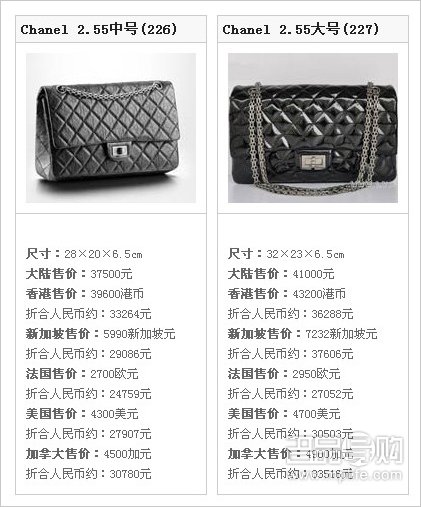 香奈儿各地报价参照表