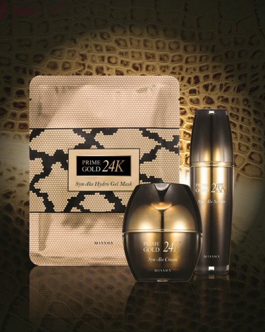 MISSHA的24K纯金毒蛇抗皱系列,包括有24K纯金毒蛇抗皱精华、面霜及啫喱面膜。24K纯金毒蛇抗皱精华,蕴含珍贵的2,000㎍24K纯金及2%类蛇毒血清蛋白,能於短时间内深度修护肌肤,击退面上的细纹、皱纹,提升肌肤弹性及紧緻度,并為肌肤带来美白效果。