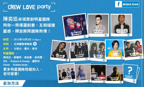 有收看adidas Originals的电视广告吗?在10月3日更会有一眾明星的adidas crew love party。想参加就留意下图。