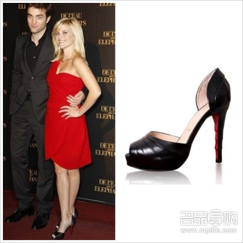 Reese Witherspoon穿着Christian Louboutin“Sexy 100”裸色红底鞋。