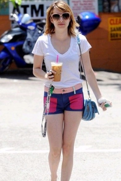 不知道该嫉妒艾玛?罗伯茨的彩色短裤还是她水晶镶嵌的凉鞋,亦或是她Dolce&Gabbana的墨镜和复古的iPhone壳。