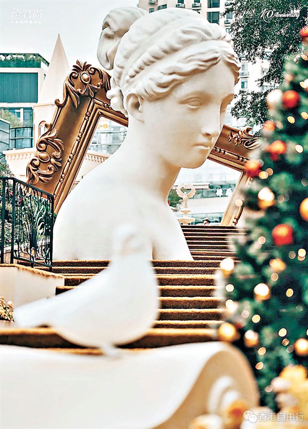 街区的欧式风格建筑错落有致,不管是仰拍、俯拍还是随手拍,每一帧照片都令人惊艳,各位港客可以在一个风和日丽的日子前来,最佳时间是下午3时至5时,与伴侣、家人或闺蜜来到这里,共赴一场浪漫盛宴。街区楼梯的超巨型石膏像、巨型画框可谓标志性打卡位之一,大家到达商场可先到楼梯位,文艺复兴风格石膏像在阶梯两边,旁边亦有镶住圣诞花环的巨型画框,大家坐在石级上,与石膏像合影,背后画框框住天空,阳光普照下微微柔光,下午更不时有白鸽飞来围住团团转,喂鸽子同时打卡,一次过满足两个愿望。