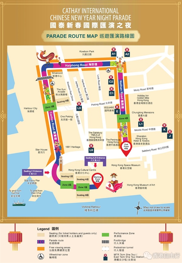 旅发局公布,2月17日(马年大年初一)晚8时于尖沙咀举办的「国泰新春国际汇演之夜」(花车巡游)所有观众席门票已售罄。未成功购票的市民与旅客,可于活动当晚自行前往巡游路线沿途观赏,或透过旅发局官方「Discover Hong Kong」YouTube频道及无綫电视翡翠台收看现场直播。