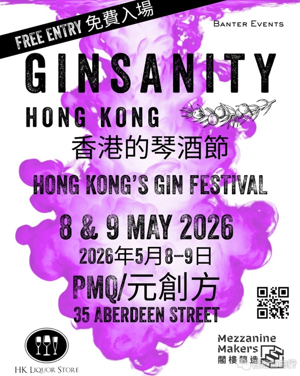 琴酒嘉年华——Ginsanity Hong Kong将于5月8日及9日回归,在中环PMQ元创方隆重举行。今届Ginsanity活动免费入场,现场将提供过百款来自本地及世界各地的顶级毡酒,同时设有现场音乐表演及多款美食摊位,营造嘉年华般的炽热气氛。
