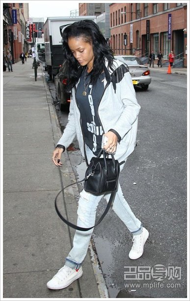 蕾哈娜近日也以一身休闲的装扮,搭配黑色的Celine Nano,有型非常!
