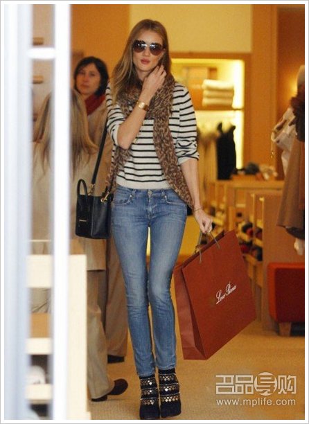 相比大号Luggage,Rosie Huntington-Whiteley似乎是Nano的死忠。黑色Nano沉稳大方,亲民的黑白条纹衫,巨星范儿的豹纹围巾,皆相得益彰。