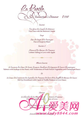 La Parole预订情人节套餐85折