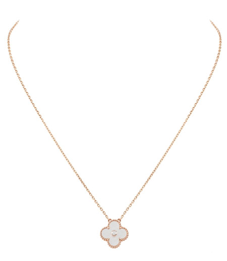 情人节临近之季,Van Cleef & Arpels梵克雅宝隆重推出全新限量版 Vintage Alhambra? 吊坠。玫瑰金,白色珍珠母贝及钻石的完美搭配,构成精致流畅与光芒四射的独特组合。