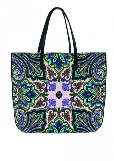 Etro 2013春夏手袋大量添加了与服装保持一致风格的印花,包括手绘的天堂鸟、蝴蝶和佩斯利花卉。