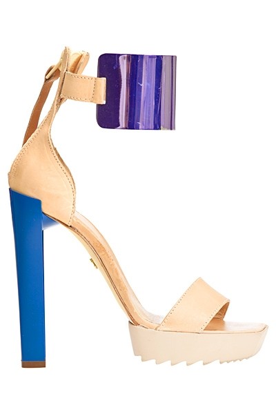 由意大利著名设计师Roberto Cavalli创立的品牌Just Cavalli 2013春夏鞋履款式简洁但各种奇趣创意元素的加入让这些鞋子个性出挑。彩色的鞋跟、齿轮底加上彩色金属的脚踝扣让经典款的凉鞋变得摩登起来;丛林动物纹以及彩色印花的加入让普通的鞋面变得俏皮生动。