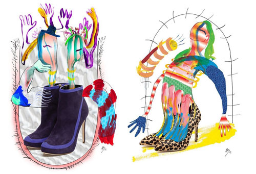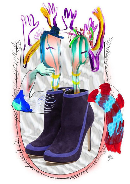 在市面上的鞋子越来越彼此雷同的现在,也许你需要来自第三方的信息来帮助你理解它(某一品牌)的特别之处。艺术家当然是最好的选择,用另一种审美的角度来劝说消费者买单,Rupert Sanderson这一季就找来艺术家Margot Bowman为品牌的鞋子绘制插图,表达方式也很直白,噢,鞋子就是天堂!看着这些色彩斑斓热情洋溢的图像,是否激起了你沉寂已久(也许不那么久)的购物欲呢?
