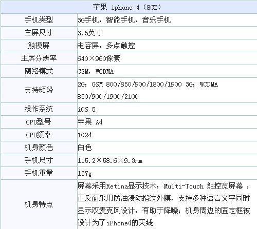 小编点评:虽然在外观上,8G版iphone4与16G的iphone4没什么区别,但8g版iphone4却在系统上较16G的有所提升,由曾经的ios 4升级到了ios 5。但ios 5系统占用系统空间要稍大一些,用户在购买的时候多多考虑一下再下手也不迟。喜欢的朋友请联系我们的商家。温馨提示:在您购机时如提及IT搜购网将会得到更优质的服务!