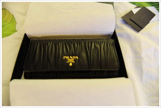PRADA小羊皮褶皱钱包