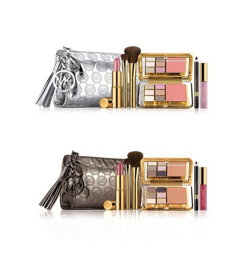 Estée Lauder by Michael Kors 节日别注美妆套装包括多用途粉妆彩盒、古铜碎粉、Pure Color高清纯色持久唇膏、Pure Color高清纯色唇彩、Double Wear持久眼线笔、眼影扫及胭脂扫。闪金节日限定版于连卡佛美容专柜发售。