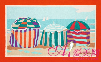 毛巾质地的沙滩巾。在这款沙滩巾上,诺曼底海边度假胜地的明艳风景点亮了画面,美丽的沙滩仅有几步之遥 。