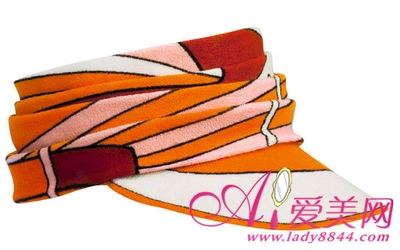 毛巾质地的鸭舌帽。这款褶裥设计的鸭舌帽采用了平纹泽西棉和真丝材料,是沙滩上的完美配饰。