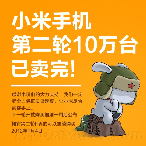 据悉,本次开放够买的10万部手机,小米公司会在未来一周内完成发货。