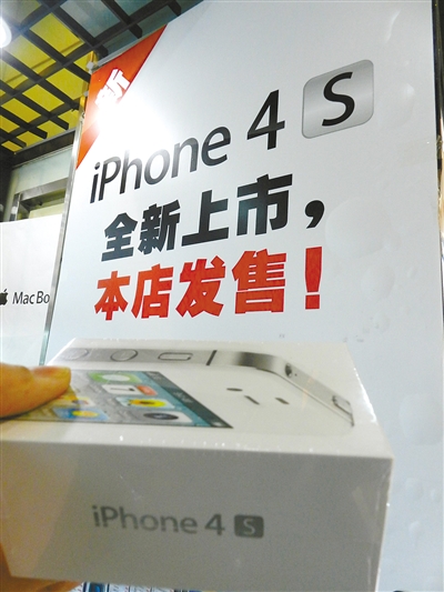 去年12月13日,广东省广州市新赛格电子城,一位市民正在苹果专卖柜台前了解苹果iPhone4S手机信息。联通版iPhone4S尚未在国内正式发售。图/CFP