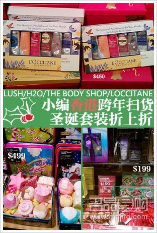 圣诞虽然已经过去,但是赶上去跨年的小编居然还是买到了很多超值的品牌圣诞套装——欧舒丹、THE BODY SHOP、LUSH、H2O。在2011的最后一天还有套装以外的额外优惠令小编惊喜不已!现在就跟随小编看下品牌店铺的实拍和价格情况还有小编的晒货!