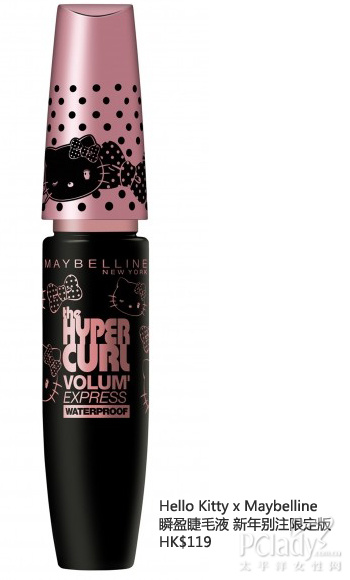 继上年Maybelline New York 与Hello Kitty联乘合作,将Volum’ Express Hypercurl Cat Eyes变身成Hello Kitty x Maybelline Volum’Express Hypercurl Cat Eyes瞬盈睫毛液之后,今年再接再励,推出新年别注限定版Hello Kitty x Volum’ Express Hypercurl瞬盈睫毛液,粉红和黑色的配搭加上Polka Dot 设计十分可爱,Kitty迷一定不能错过!