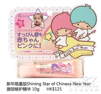 这阵子Sanrio应该非常忙碌,之前才刚和大家介绍了Hello Kitty 睫毛液,今天又收到最新消息,就是ettusais 继去年圣诞后,再次和Little Twin Stars Crossover,于下星期推出新年限量版Shining Star of Chinese New Year唇部修护精华,上次抢不到圣诞限量版 的粉丝又有机会了!
