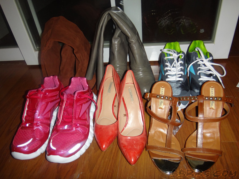 靴子红色的@ZARA; 灰色的@东荟 pedder warehouse,旁边的凉拖@ZARA