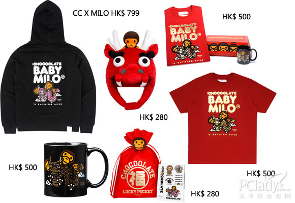 为庆祝龙年的来临,:CHOCOOLATE x BABY MILO®第二度联名系列将加入不少龙年的元素,当中少不了的就是印有可爱趣致的BABY MILO® print tee及sweater,而其中一款pattern印有 “龙”字样再加上活泼的BABY MILO®在旁,为配合BABY MILO®的可爱形象,另一款则印上飞龙图案再加上BABY MILO®,将传统龙的严肃形象而演变成可爱亲切的飞龙。