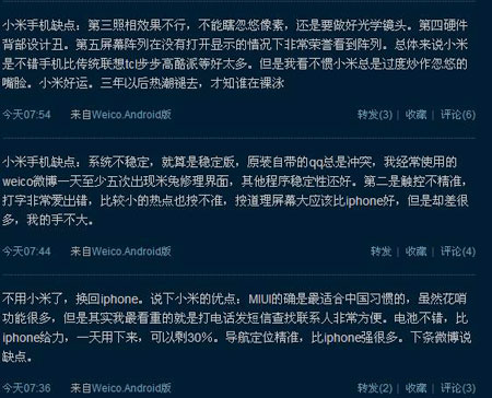 网友晒小米手机优缺点 系统不稳定和QQ等冲突