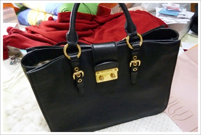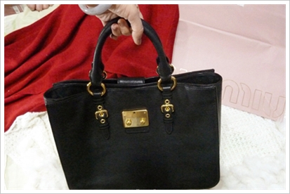 接下来是我的MIUMIU包,其实,去之前我想的是收个几千块钱的包,一万以内打住……也算结婚前慰劳一下自己……结果去了之后,看到MIUMIU这款, 里外全皮的,不差这几千了,咬咬牙买下了,买就买自己喜欢的吧……而且,背出来也很低调的,黑色百搭,还是不错……不过,一向勤俭节约惯了的我到现在都没 用这包,也不知道啥时候用,感觉背出去要小心翼翼的,还是先放在衣柜里吧…