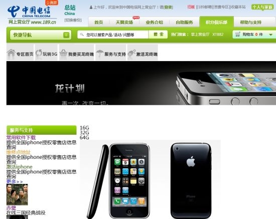 中国电信网上营业厅已经开始上线内测“龙专区”,该页面使用iPhone 4S做宣传。