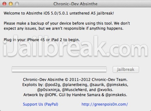 说到春节期间的新闻,苹果A5核心的两款产品的iOS5版本的惨遭破解无异于是当日的爆炸性时间,苹果北京时间1月21日凌晨,著名越狱团队绿毒的带头人p0sixninja更新Twitter消息,绿毒官网也同时更新多条消息,正式发布了令人期待已久的苹果A5芯片 iOS5.0.1版本OS X越狱工具Absinthe,Pod 2g“数小时等待”的承诺终成现实,这也就意味着iphone4S以及iPad2的iOS5.0.1固件的越狱工作正式宣告结束。