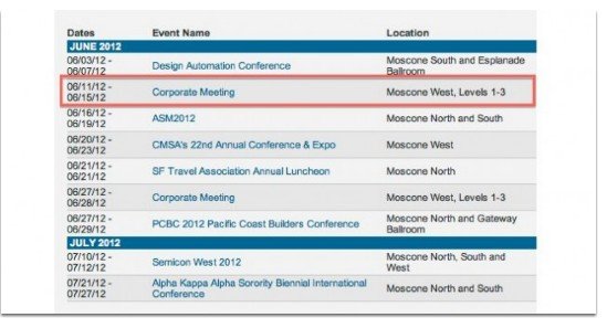 Moscone会议中心预订表(腾讯科技配图)