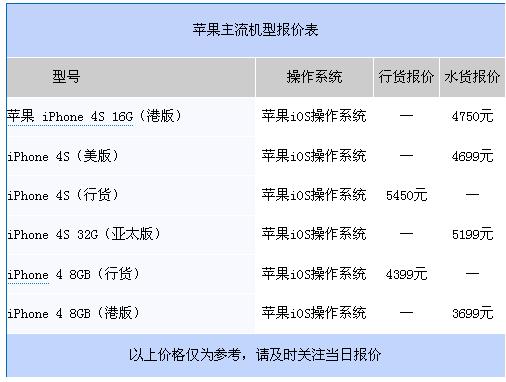 最新热门手机行水报价表 iPhone 4S最低4699元