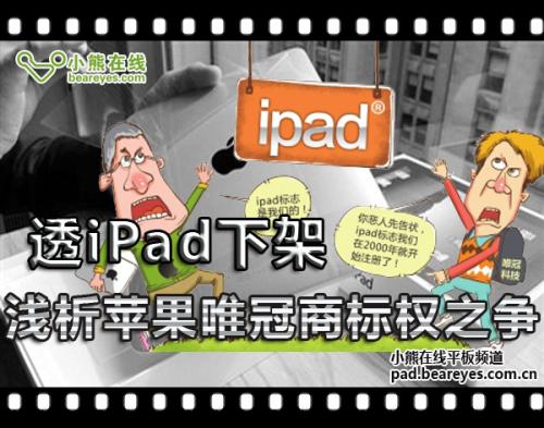 ipad下架令:近期,IT产品界一重大消息令不少人大吃一惊,尤其是果粉们。就在这iPad 3上市消息被炒得纷纷扬扬的时候,谁想半路杀出个程咬金,因为唯冠国际的一纸诉讼,平板界的老大苹果iPad在大陆居然遭受禁售待遇。