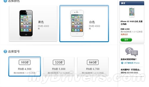 现在,苹果中国官网显示,用户可以购买苹果 iPhone 4S 16G(黑、白)手机的数量在1部至840部之间,而配送时间在1-3个工作日。从这个举动也可以看出,该机的货源不是一般二般的充裕。