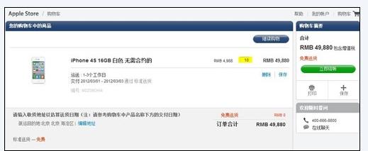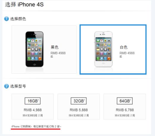 2月1日,消费者发现苹果官网突然放开对iPhone 4S的销售,预订流程畅通,并且长时间处于放货状态。不少果粉“一顿饭工夫”订到了iPhone 4S,并且价格还低于水货市场,因此高兴不已。