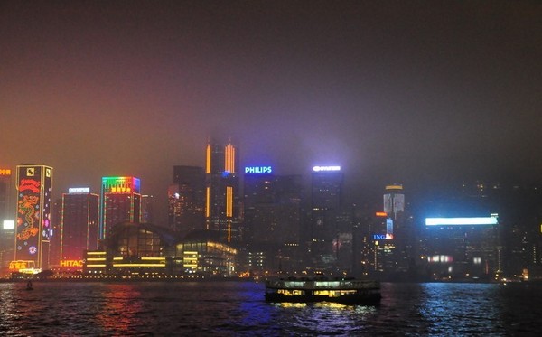 之后从尖沙咀码头坐天星小轮回港岛,欣赏维多利亚港夜景。