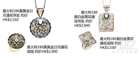 EMPHASIS JEWELLERY点睛品每季均会为时尚爱好者搜罗世界各地独特设计的珠宝首饰。Mysterious Gold系列由意大利工匠精心打造,以罗马日月神话及异国雪景作为灵感,于18K金片上刻划细致的通花图案,营造别致的喱士效果。波浪圆形吊坠及耳环,以黑金塑造出神话的夜空,金黄色的太阳月亮图案份外抢眼迷人。银白色的方形白金吊坠及戒指,闪耀着黄金花瓣的柔和光芒,有如初春雪地上散发万物重生的希望之光。一身民族服饰,衬以Mysterious Gold系列,尽显个人风格。